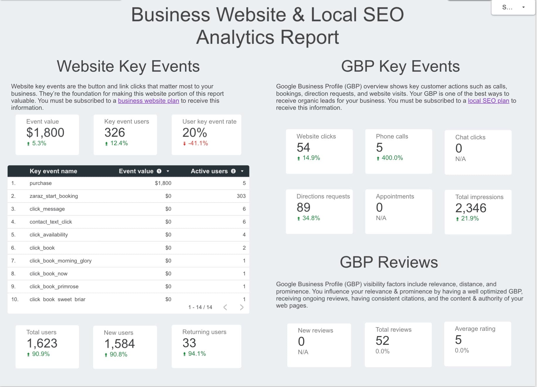 Monthly reports show which marketing efforts are driving the most value, so you can clearly see what local SEO is worth to your business alongside your other marketing. Download the sample report (PDF) .